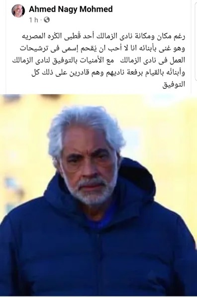 “رغم مكان ومكانة نادي الزمالك أحد قطبي الكرة المصرية وهو غني بأبنائه، أنا لا أحب أن يُقحم أسمي في ترشيحات العمل في نادي الزمالك”