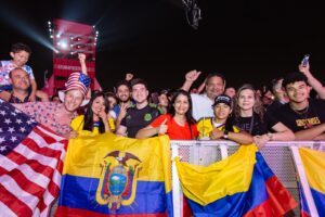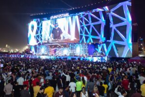وجاء افتتاح المهرجان، قبل يوم واحد من انطلاق المونديال، واستمتع الحضور بموسيقى دي جي، وعروضٍ للألعاب النارية، إضافة إلى أغنية “توكو تاكا”، النشيد الرسمي لكأس العالم في قطر، بمشاركة النجمة اللبنانية ميريام فارس، والنجم العالمي مالوما.