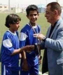 نشر أحمد محمود الجوهري صورة لوالده وهو يكرم النعيمات في بدايات مشواره وهو ناشئ صغير
