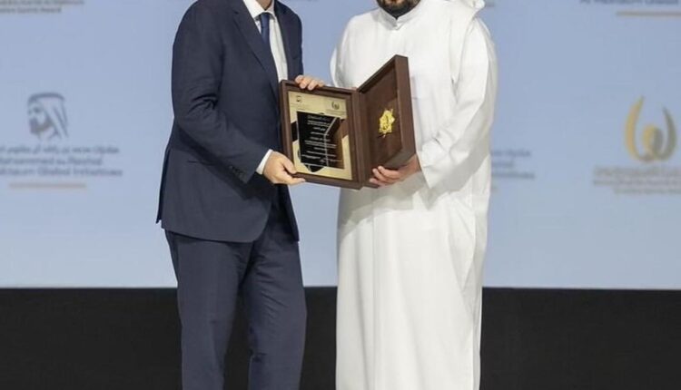 توج جياني إنفانتينو رئيس الإتحاد الدولي لكرة القدم بجائزة شخصية العام الدولية في حفل جوائز محمد بن راشد ال مكتوم للإبداع الرياضي عن عام 2023 التي اقيمت بدبي امس .