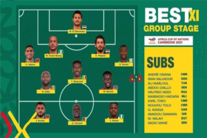 كشفت اللجنة المنظمة لبطولة كأس الأمم الأفريقية المقامة فى الكاميرون عن أفضل تشكيلة للاعبين من دور المجموعات والتى ضمت كلا من محمد الشناوي حارس منتخب مصر وأحمد حجازي مدافع الفراعنة.