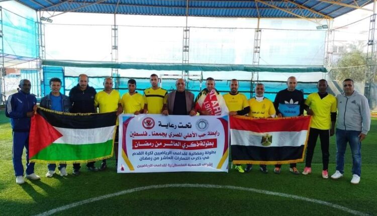 بحضور زياد أبو سمره، وأسامة عمر رئيس رابطة حب الأهلي المصري يجمعنا في فلسطين، وحسام الغرباوي الناطق الإعلامي لقدامى الرياضيين، وصالح مبروك رئيس اللجنة الرياضية في المحافظة الوسطى بالجمعية والمشرف العام على البطولة، وعدد كبير من قدامى اللاعبين.