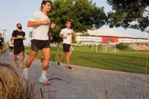 وقال خالد البوهندي، عضو نادي VIVA للجري: “المرافق هنا مثالية للجري وممارسة الرياضة، حيث يتوفر لنا كل ما نحتاجه من مسارات وأجهزة ومساحات واسعة، إضافة إلى انتشار المساحات الخضراء من حولنا في كل اتجاه، والإطلالة المبهرة لاستاد البيت الفريد. هي بلا شك تجربة فريدة من نوعها.”