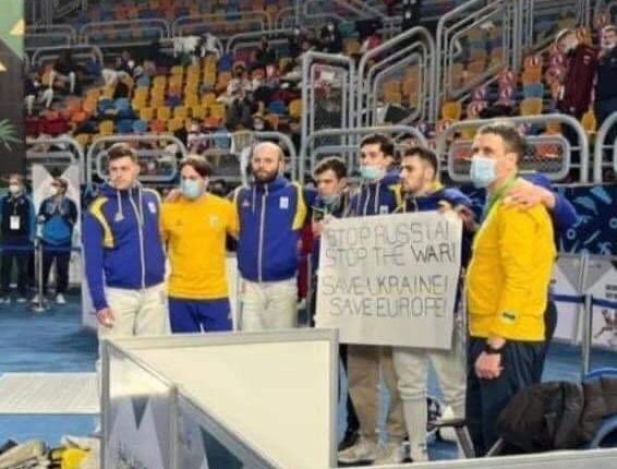 وكانت قرعة في منافسات الفرق قد أوقعت روسيا في مواجهة أوكرانيا وحضر منتخب إلى الصالة المغطاه لكنهم انسحبوا من اللقاء وعلقوا لافتات كتب عليها : أوقفوا روسيا والحرب على أوكرانيا وانقذوا أوكرانيا وانقذوا أوروبا” .