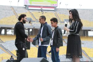 بالصور محمد صلاح يصافح ويحتفي بفريق كورال الامل والنور من المكفوفين