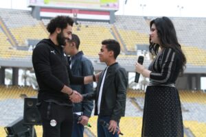 حرص النجم محمد صلاح كابتن منتخب مصر ولاعب ليفربول الانجليزي علي مصافحة فريق كورال الامل والنور من المكفوفين وذلك قبل دقائق من انطلاق مباراة مصر والجابون في الجولة الاخيرة من المرحلة للتصفيات المؤهلة لكاس العالم قطر 2022 وتأهلت مصر الي جولة النهائية بعد التعادل مع انجولا في المباراة الماضية .