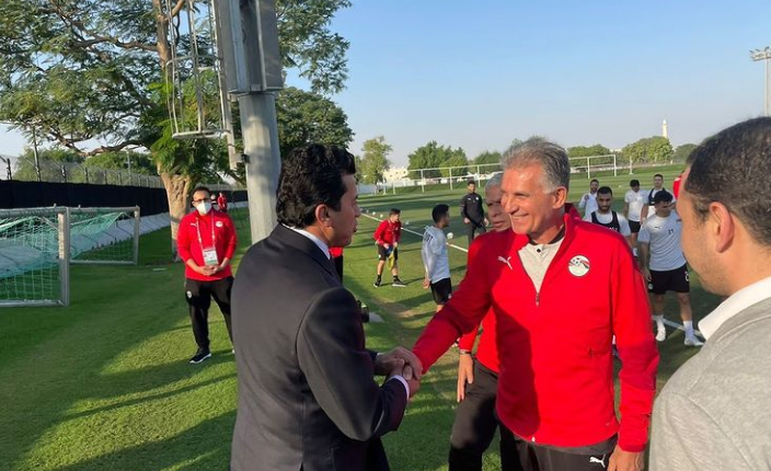 حرص الدكتور أشرف صبحي وزير الشباب والرياضة علي زيارة لاعبي المنتخب الوطني لكرة القدم وجهازهم الفني بقيادة كارلوس كيروش ،اليوم الثلاثاء، خلال معسكرهم التدريبي المقام بدولة قطر استعداداً لمنافسات بطولة كأس العرب.