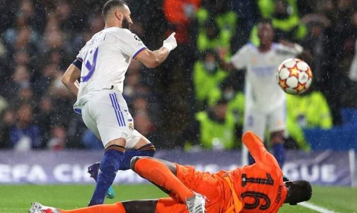 وفاز الريال بنتيجة ٣-١ على ملعب تشيلسي ليضع قدما في نصف النهائي الأوروبي حيث تألق المهاجم والقائد الفرنسي كريم بنزيما مسجلا ثلاثية الريال.