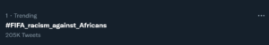 و خلال ساعة فقط من نشر هاشتاج #FIFA_racism_against_africans تصدر قائمة الأكثر إنتشارًا على مستوى مصر و الثاني عالميًا.