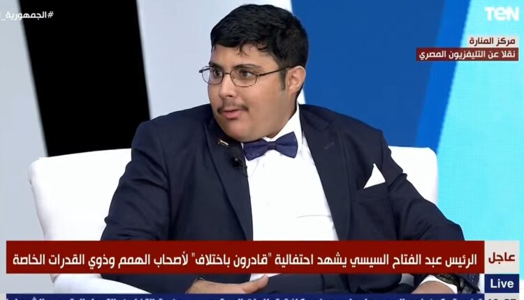 كان الشاب احمد طارق جميل قد تحدث مع الرئيس من بين مجموعة من ذوي الهمم الذين كانوا على مسرح الاحتفالية .