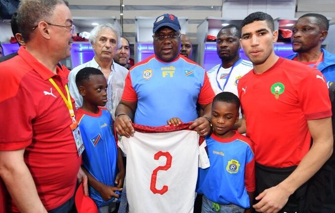 وحرص الرئيس الكونغولي على تهنئة البعثة المغربية بنفسه كما التقى فوزي لقجع رئيس الاتحاد المغربي ورئيس البعثة والمدير الفني البوسني وحيد خاليلوزيتش وأيضا النجم أشرف حكيمي الظهير الأيمن وحصل على قميصه.