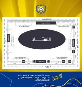 ومن المقرر أن يتم طرح هذا الملف خلال المؤتمر الإستثماري الذى ينطلق فى أبريل الجاري تحت رعاية السيد محافظ الإسماعيلية شريف فهمي بشارة الذي رحب للغاية بتلك الفكرة من أجل دعم ومساندة النادي وتقوم علي التسويق الإعلاني لعدد 170 باكية بالسور أمام السادة المستثمرين ورجال الأعمال وأصحاب الشركات والمؤسسات المصرية والعربية الكبري لاسيما أنه يتمتع بموقع مميز في وسط المدينة ويعد منطقة جذب إستثمارية، حيث يقام علي تقاطع أربعة شوارع رئيسية بالمحافظة وذات كثافة مرورية وسكانية.