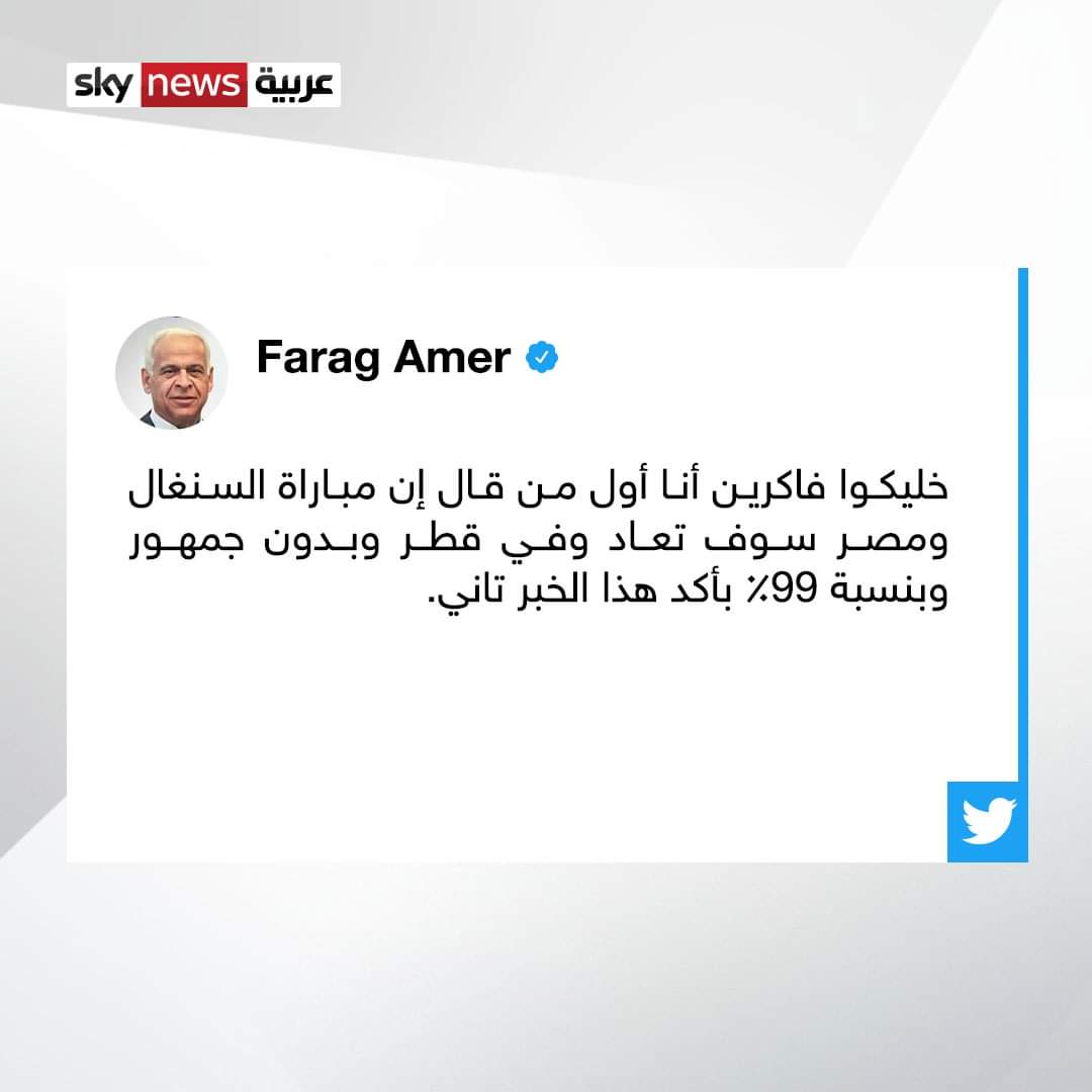 خليكوا فاكرين انا اول من قال ان مباراة السنغال ومصر سوف تعاد وفي قطر وبدون جمهور وبنسبة ٩٩٪ بأكد هذا الخبر تاني.