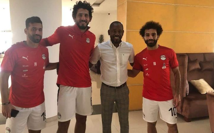 والتقط الدولي الانجولي السابق صورة مع نجوم المنتخب المصري محمد صلاح و احمد حجازي و عبدالله السعيد.