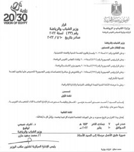 أعلنت وزارة الشباب والرياضة عن تعيين الدكتور أحمد حمدي أحمد عزمي مديراً عاماً لأدارة المنتخبات الوطنية في الوزارة وهذه الإدارة تعد من أهم إدارات الوزارة حيث تتولى الأشراف على كل المنتخبات الوطنية في كل اللعبات .. وتنسيق برامجها وأعتماد خطط اعدادها من خلال أوضه الانفاق والدعم الحكومي بالتنسيق مع اللجنة الأليمبية المسئولة فنياً عن هذا الجانب .