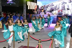 تضمن الحفل تقديم مجموعة من الفقرات الفنية والرياضية، وبدأ بدخول طابور العرض للمحافظات المشاركة فى الأولمبياد المتمثلة فى “أسوان، البحر الأحمر، الوادى الجديد، جنوب سيناء، شمال سيناء، مطروح”، أعقبه تقديم عرض رياضى فى رياضة الكاراتيه، وعرض لكلية التربية الرياضية بأسوان، وعرض فنى قدمه مجموعة من الطلائع، وفقرة فنية لفريق “بلاك تيما” بمصاحبة أوركسترا وزارة الشباب والرياضة. فى كلمته، نقل وزير الشباب والرياضة تحيات السيد رئيس مجلس الوزراء إلى جميع المشاركين فى ختام الأولمبياد الحدودية، مقدماً الشكر والتقدير للسادة محافظى المحافظات الحدودية على التعاون المثمر مع الوزارة فى تنفيذ الأولمبياد الحدودية فى نسختها الثالثة.